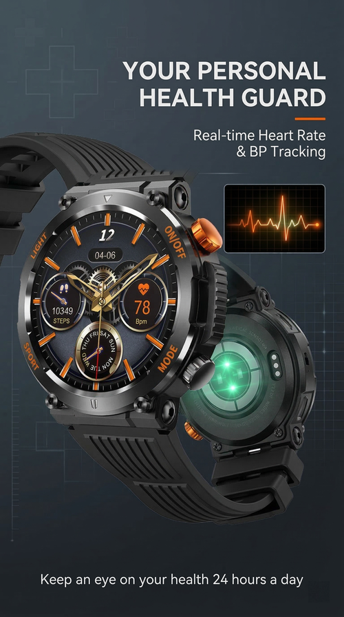 Rugged Black Smart Watch | Bluetooth Call | Custom Dial Face | Heart Rate & Blood Pressure Monitor | Multi-Sport Fitness Tracker for Men